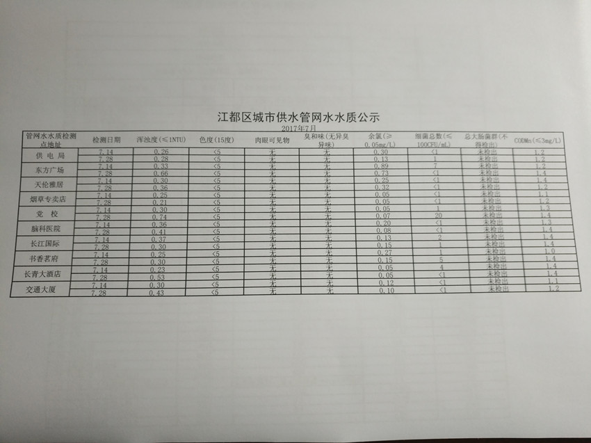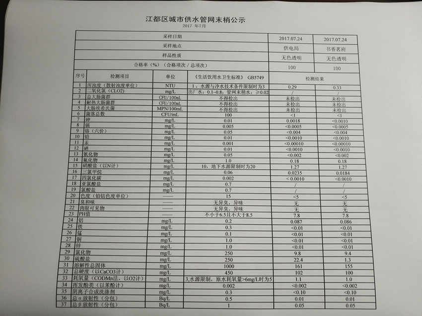 水質(zhì)公示