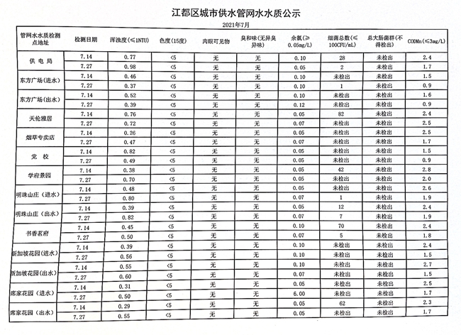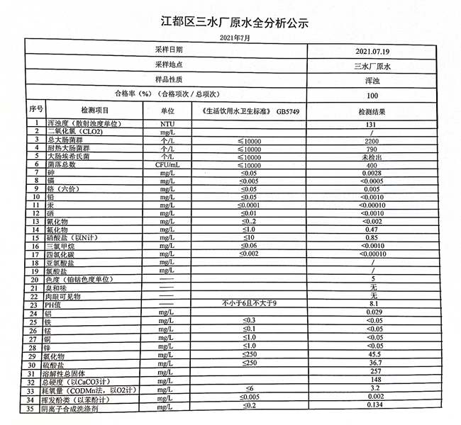 水質(zhì)公示