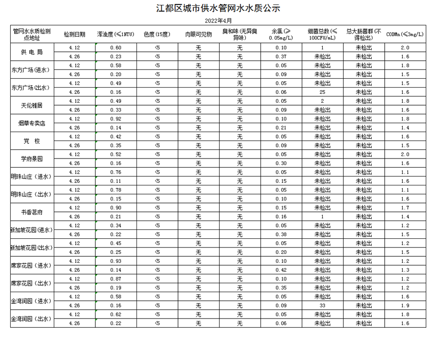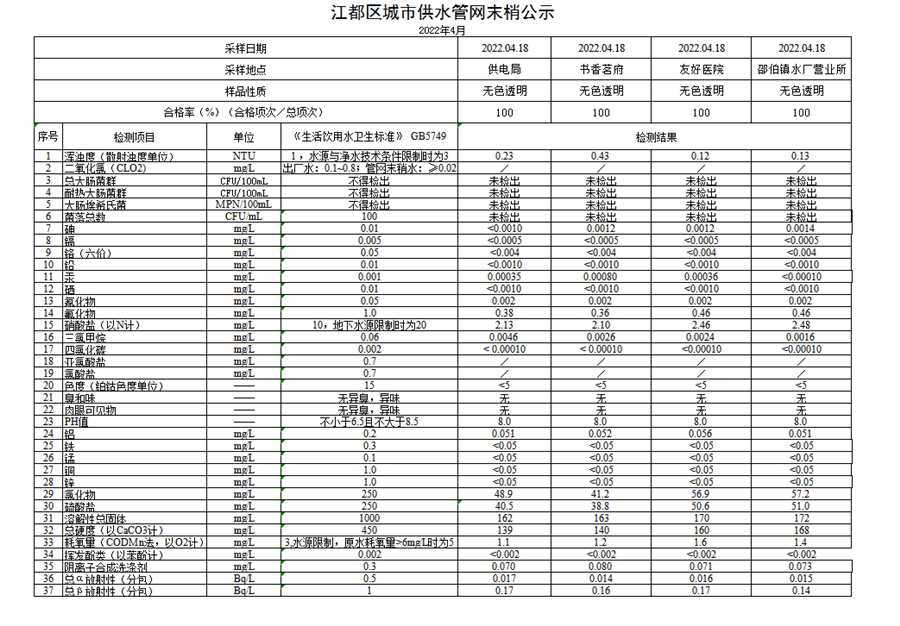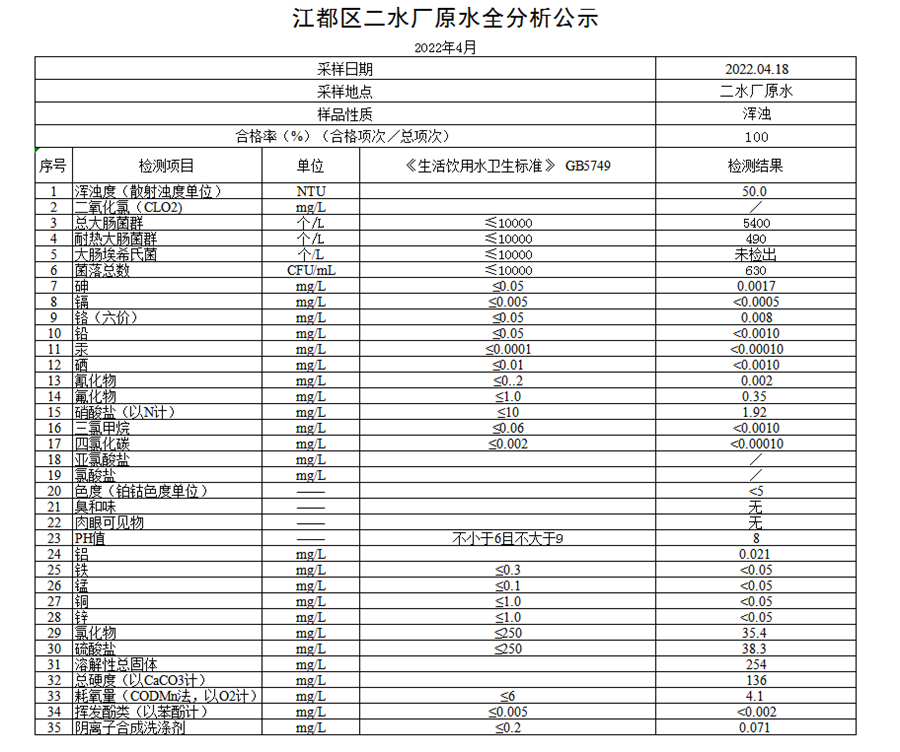 水質(zhì)公示