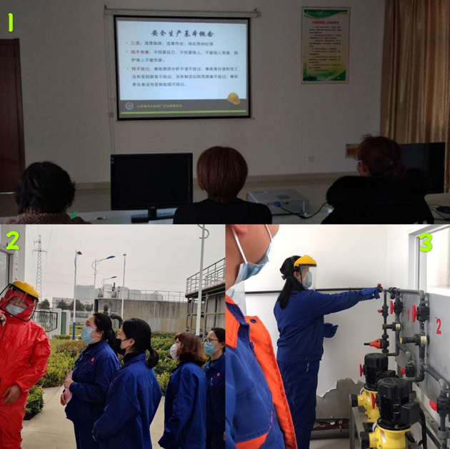 以邵伯污水廠為例,該廠結(jié)合自身工作實際,組織污水運營工學習次氯酸鈉的特性、消殺毒原理及如何正確使用防護裝備,熟練掌握次氯酸鈉發(fā)生泄漏時的各項應(yīng)急處理措施,并在現(xiàn)場實施了一系列演練活動。另組織運營工赴小紀污水處理廠內(nèi)觀看學習安全教育視頻,提高了員工安全防范意識及風險識別能力。