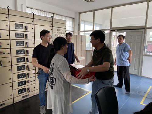8月4日上午,在總經(jīng)理王智勇的帶領(lǐng)下,公司黨政工領(lǐng)導(dǎo)代表和相關(guān)職能部門帶著防暑降溫物品,先后深入供水生產(chǎn)、水質(zhì)化驗檢測一線、管道施工現(xiàn)場和鄉(xiāng)鎮(zhèn)供水所、污水處理廠,集中進(jìn)行夏季高溫慰問活動,為默默揮灑汗水的一線工作者們送上清涼飲料等慰問品。王智勇總經(jīng)理每到一處都詳細(xì)詢問了他們的工作和生活情況,對大家不畏酷暑堅守工作崗位的精神表示衷心的感謝,并叮囑他們在高溫天氣下勞作要保重身體,既要戰(zhàn)高溫斗酷暑完成本職工作,也要確保身心健康,時刻注意高溫下的安全勞作。