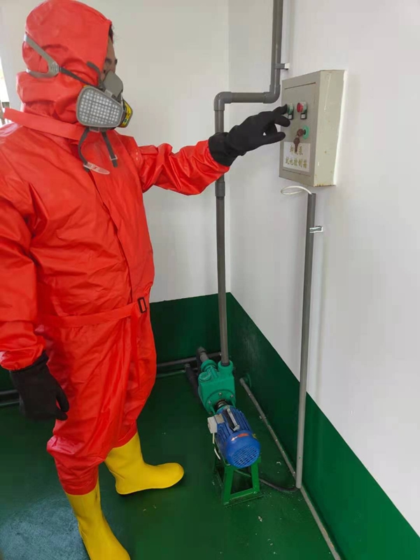 污水公司安全主任謝觀(guān)遠(yuǎn)還根據(jù)相關(guān)活動(dòng)議程和要求,按照公司編制的次氯酸鈉泄漏應(yīng)急預(yù)案,帶領(lǐng)安全員及運(yùn)營(yíng)工開(kāi)展了次氯酸鈉演練活動(dòng)。