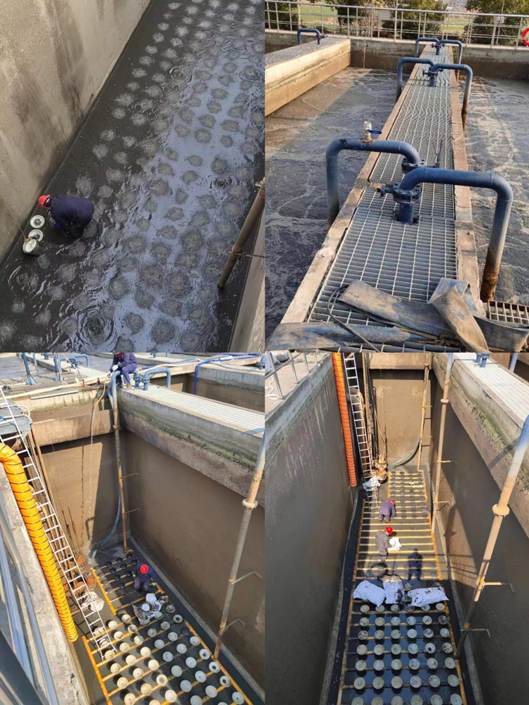 圖為邵伯鎮污水廠曝氣盤維護換新施工現場。