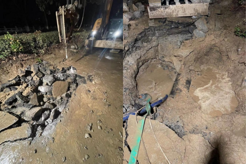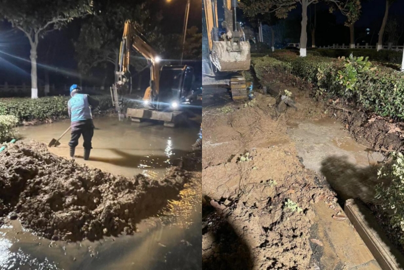 2023年1月25日,大年初四下午4點,當大家還沉浸在新年的節日氛圍,在走親訪友時,在做待客的晚飯準備時,龍泉公司接到群眾反映,江都橋北道路由于氣溫驟降的原因導致DN600主管發生爆裂,嚴重影響到附近居民供水安全以及道路安全,接到反映后,值守經理韓春暉同志、項目部經理夏陽華同志果斷部署,搶修班組迅速響應、組隊,趕往現場。