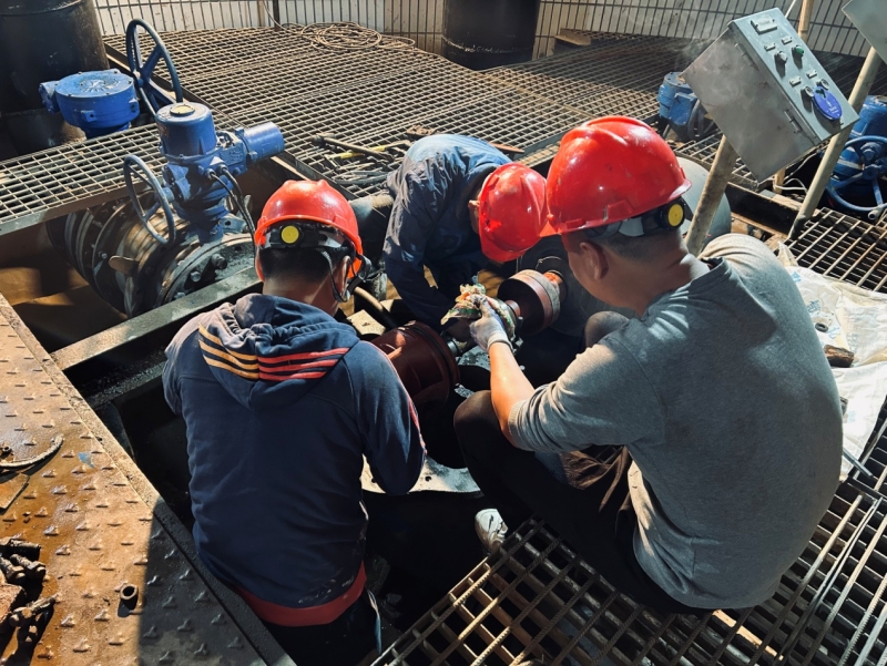 深夜12點,維修工作按計劃開始。二水廠廠長許明、運行班長葉欣、機修班長黃志忠及班組成員均參與了此次維修工作。同志們干勁十足,爭分奪秒。經過兩個多小時的奮戰,順利完成了維修工作。