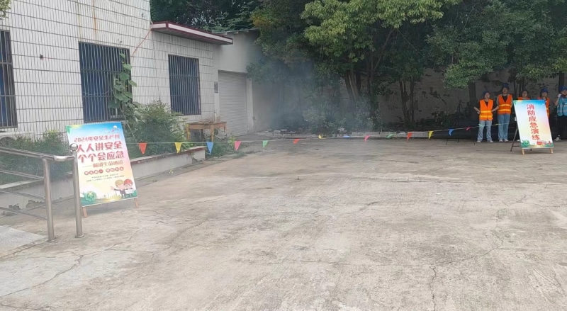 演練組組長各自帶隊進入演練等候區域,應急成員燃放兩枚煙霧彈,隨著現場指揮鳴哨警報火情,參演組聽到哨音警報后由各組組長帶隊,參演人用毛巾捂住口鼻,緊靠樓道墻體,有序地緊跟隊長撤離火場。逃生演練結束后,疏導組引領參演人員進入滅火演練等待區域,先由應急成員進行滅火示范,然后各參練人員先后分別使用滅火器進行現場滅火演練。最后應急成員負責將演練火種全部熄滅。