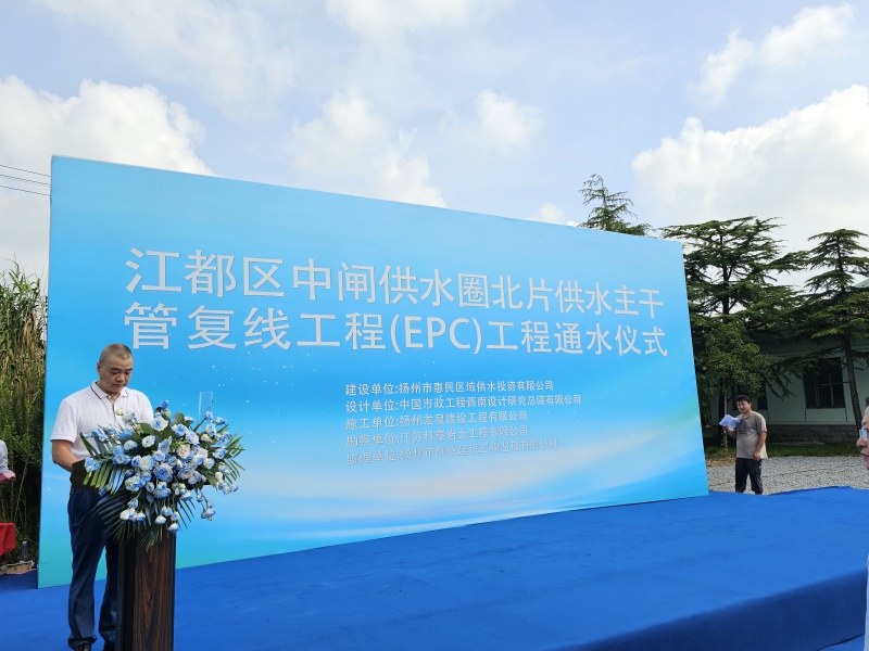 2024年9月10日上午,經過歷時2年建設,揚州龍泉建設工程有限公司在郭村泵站隆重舉行江都區中閘供水圈北片供水主干管復線工程管線正式通水儀式。中國市政工程西南設計研究總院有限公司副院長陶輝應邀出席活動。揚州龍川水務公司董事長張勇,總經理李忠國、總工程師彭鵬、龍泉公司經理韓春暉以及工程建設、施工、監理單位代表50余人參加了運行通水儀式。