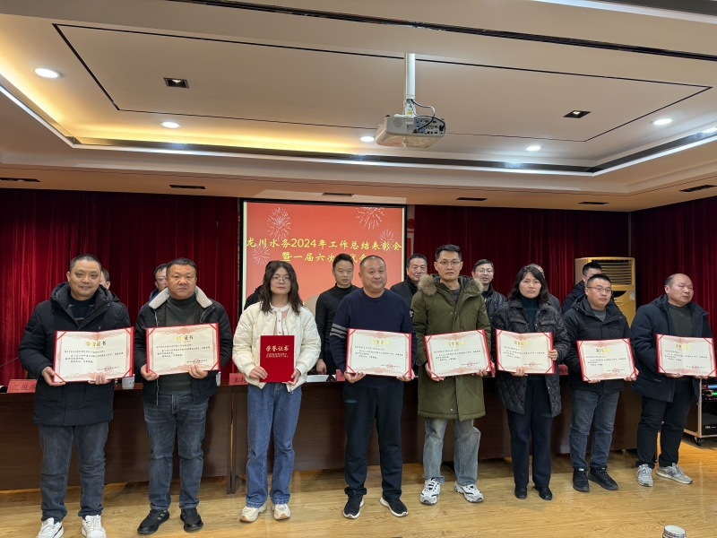 在本次大會的表彰環節,公司副總經理石元忠同志宣讀了《關于表彰二〇二四年度先進集體和先進個人的決定》,接著舉行了簡短的授獎儀式,與會領導為獲得表彰的先進集體和先進個人代表頒發了榮譽證書。大會號召全體干部職工要以先進集體和先進個人為榜樣,緊抓供排水安全工作,緊扣降本增效主線,主動融入,主動作為,繼續保持奮發向上、昂揚進取的精神,奮力在新征程上譜寫龍川水務事業發展新篇章。